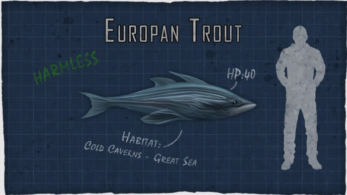 Европейская форель: Безобидная рыба, образующая небольшие стаи, которые следуют за субмариной, создавая атмосферу.