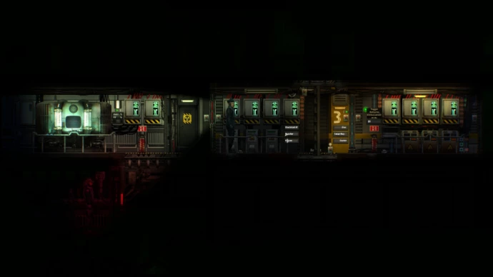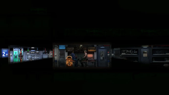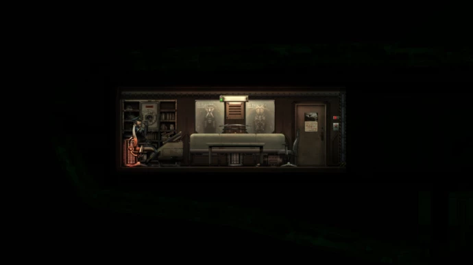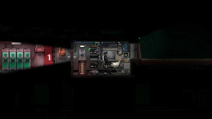 Командный центр с терминалом, дисплеями температуры реактора и заряда батареи.