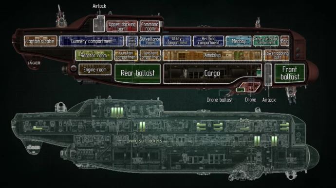 Мод «R-29A1 «Jäger»» для игры Barotrauma представляет собой улучшенную версию знаменитой подлодки R-29 «Big Rig». Этот транспортный корабль сохранил надежность оригинала, но получил усиленное вооружение, улучшенную энергосистему и удобный капитанский мостик. Главная фишка — разведывательный дрон, которым можно управлять как с мостика, так и прямо на борту.