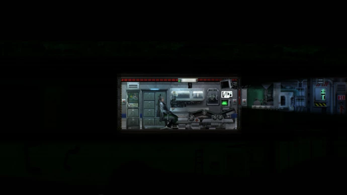 Просторный медблок с койкой и оборудованием для изготовления медикаментов.