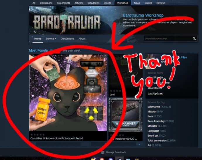 Мод «Casualties Unknown (Scav Prototype) Lifepod» на Barotrauma