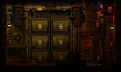 Красная кнопка под основной позволяет заблокировать дверь (функция доступна только капитану и службе безопасности).