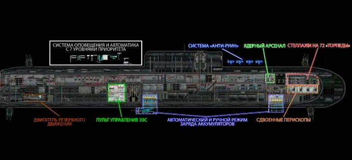 • 4 перископа в торпедном отсеке являются сдвоенными;