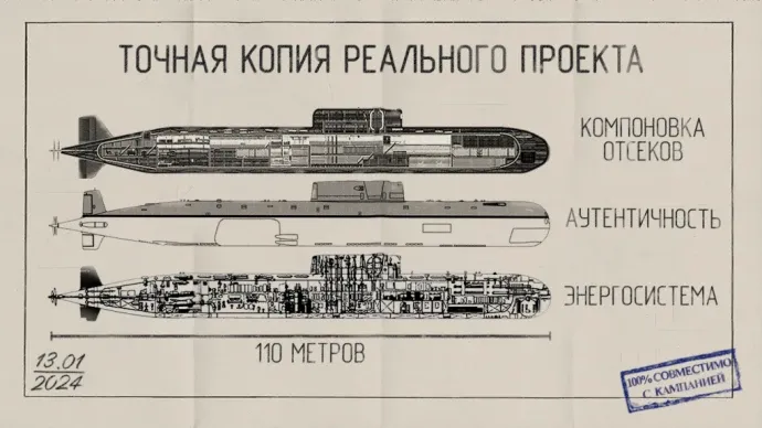 Главная цель создания подлодки – точное воссоздание реального проекта 685 «Плавник», лишь несколько аспектов изменены в угоду играбельности. Габариты, компоновка и электроэнергетическая система (ЭЭС) почти полностью соответствуют реальной К-278 «Комсомолец». Концепция инженера переработана: без опытного инженера невозможно зарядить аккумуляторы, запустить реактор или перенаправить энергию на необходимые для выживания секции.