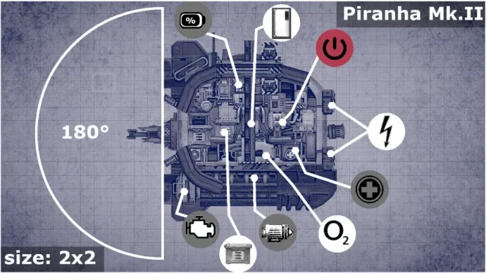 Мод «Piranha MK. II S» для Barotrauma добавляет шаттл-истребитель Piranha Mk II – двухместный аппарат для разведки и сопровождения. Пилоты часто называют его «аквариумом». Компактный дизайн и низкая стоимость сделали его популярным в коалиционном флоте, а также среди владельцев крупных частных подводных лодок и станций.