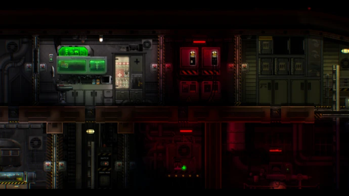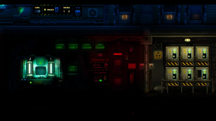 Активация рычага отключает питание Fabricator’ов, ускоряет перезарядку орудий и запускает оповещение экипажа через изменение освещения и индикаторы на мостике.