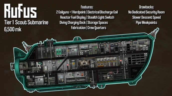 Балласт А был переделан в инженерную комнату ценой снижения скорости погружения. Добавлены катушечная пушка и разрядная катушка для дополнительных наступательных возможностей.