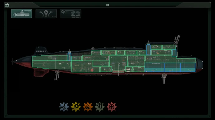 SENECA-V – это крупная подводная лодка, основанная на реальной российской подводной лодке класса «Дельта» или китайской Type 094, которая также представлена в GTA:V Online как Kosatka. Внутреннее устройство не соответствует ни реальной подлодке, ни Kosatka, хотя некоторые элементы дизайна Kosatka присутствуют. Для обслуживания этого судна рекомендуется команда среднего или большого размера.