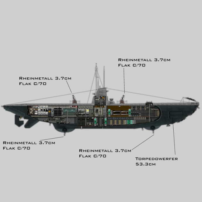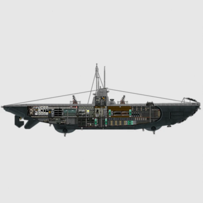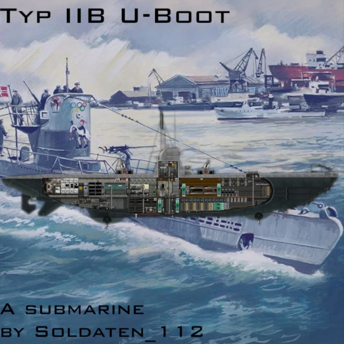 Подлодка типа IIB, выполненная с максимально возможной исторической точностью в плане габаритов и компоновки.