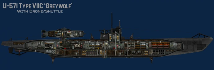 Мод для Barotrauma «U-571 Type VIIC 'Greywolf'» – часть серии Nuclear U-571. Воссоздаёт эстетику и тесноту подлодки Type VIIC с повышенной точностью, сохраняя игровую функциональность. Настройки максимально приближены к стандартным: например, система кислорода потребляет 1/4 мощности и выдаёт 1/4 выхода от значений по умолчанию. Добавлены всплывающие подсказки для переключателей.