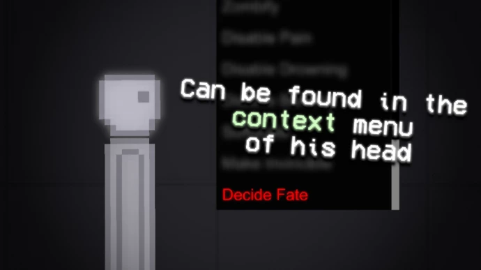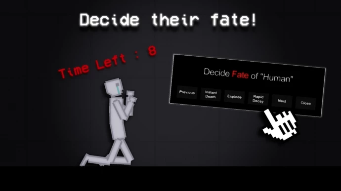 Мод «Fate Decision» для игры People Playground позволяет решать судьбу персонажей. В контекстном меню появляются новые опции, которые дают больше контроля над их действиями и исходом событий. Просто выбирайте нужный вариант и наблюдайте за последствиями.