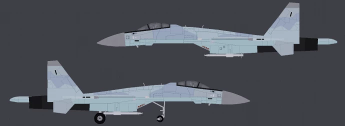 Су-35С — модернизированный многоцелевой истребитель поколения «4++» с высокой манёвренностью и двигателем с изменяемым вектором тяги. Создан в ОКБ Сухого в 2008 году. Управление: H — двигатель, Y — форсаж, N — шасси, J — тяга вниз, U — тяга вверх, I — катапультирование, L — 30-мм пушка, O — ракеты, P — ЛТЦ.
