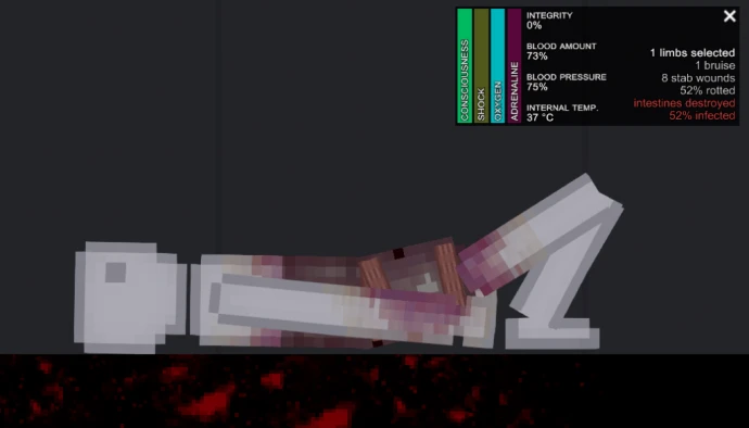 Мод добавляет органы для людей и андроидов, перерабатывает систему внутреннего кровотечения и вводит дополнительные механики, чтобы сделать убийства и лечение более реалистичными и интересными. Органы и внутренние повреждения отображаются в детальном режиме просмотра/Detailed view, прочие повреждения — в окне осмотра/Inspect. Мод можно включать и отключать в любой момент двойным нажатием клавиши M (можно переназначить).