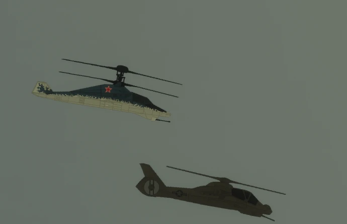 – Ka-50, Mi-24, Mi-8 (2 варианта), An-72, AH-64, Mirage 2000, Dassault Rafale;