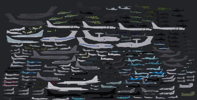 Добавляет 70 летательных аппаратов: самолётов и вертолётов: