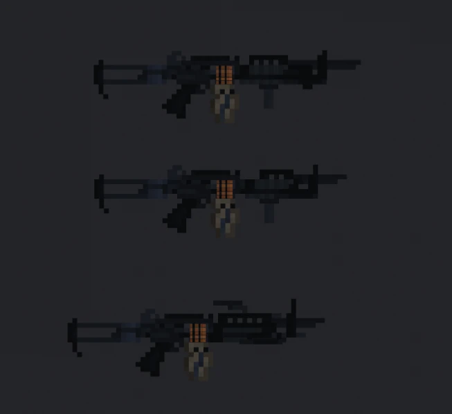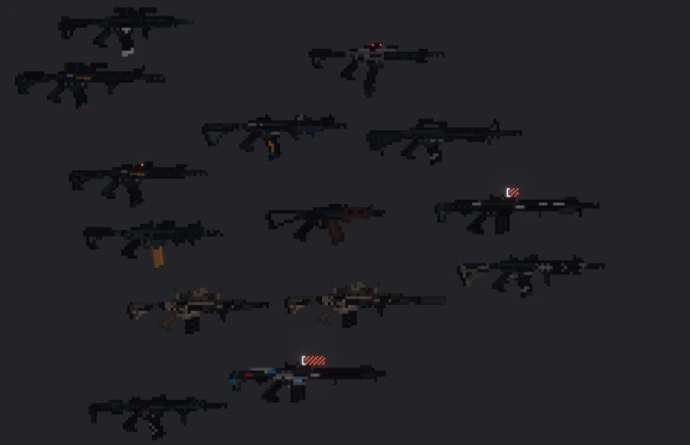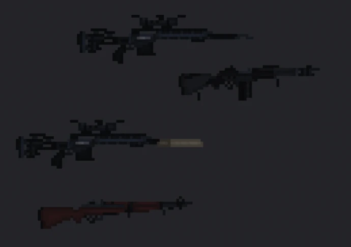 - Детализация оружия: Реализованы подвижные части (затворы, рукояти взведения, крышки ствольной коробки, прицелы). У пистолетов есть кожухи затворов, у некоторых винтовок – фиксаторы затвора. Прозрачные магазины визуально отображают количество патронов.