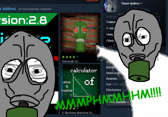 Мод «Hazmat etc» для People Playground добавляет набор советского и постсоветского оружия, брони и средств химической защиты (противогазы являются бронёй).