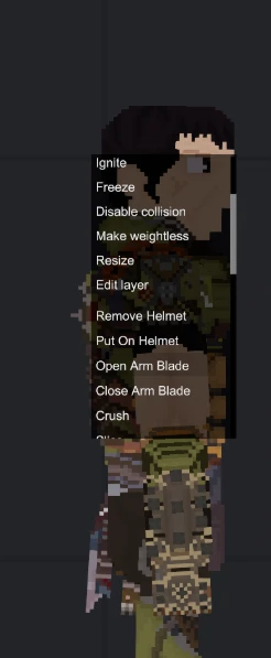 – Рабочий клинок на руке (включается ПКМ по голове → прокрутка в меню)