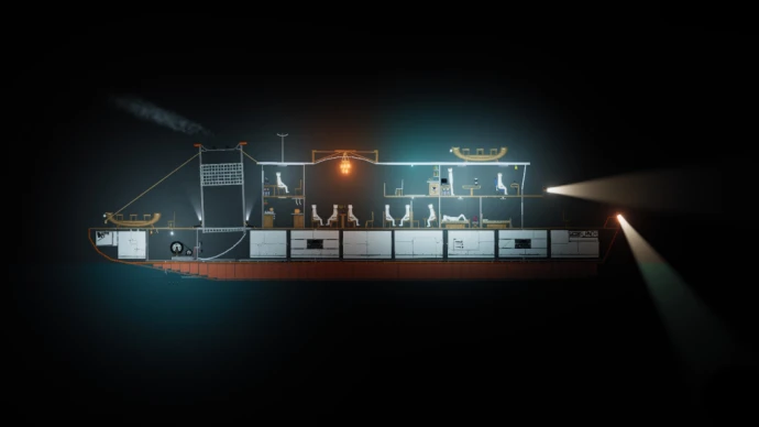 - Чтобы управлять движением лайнера, выберите один из трёх винтов (выбор всех трёх обеспечивает максимальную скорость). Колокол в капитанской рубке неактивен и служит только для атмосферы.