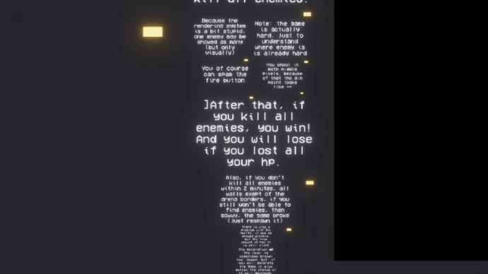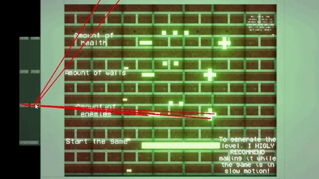 - Перед запуском настройте количество здоровья (каждая точка равна 3 единицам), число стен и количество врагов.