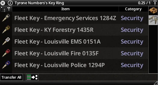 Изменяет работу аварийно-спасательных транспортных средств: вместо уникальных ключей при спавне используются общие ключи для всего автопарка. Полицейские, пожарные, кареты скорой помощи, лесные и луисвиллские городские машины экстренных служб теперь используют одинаковые ключи, что делает муниципальные ключи полезными для целого автопарка, а не только для одной машины.