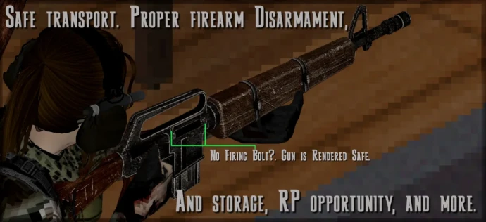 – Возможность сделать оружие безопасным: удаление затвора, затворной рамы или ударно-спускового механизма блокирует стрельбу до восстановления детали