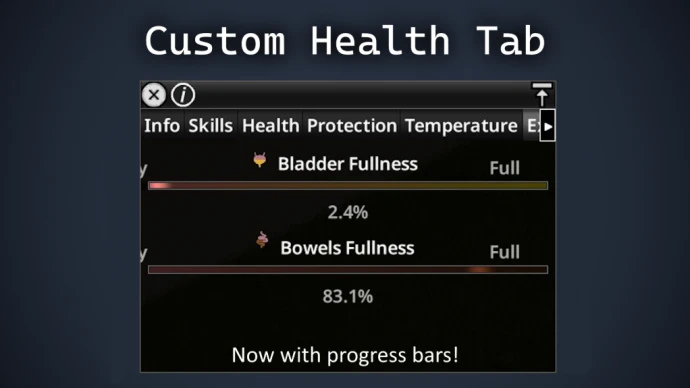 – Новые черты персонажа: влияют на вместимость мочевого пузыря и кишечника