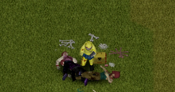 Щёлкните правой кнопкой мыши по частям тела зомби, держа в руках острый нож, чтобы собрать материалы.
