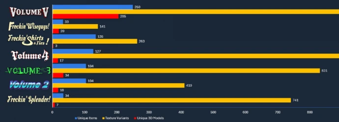 - 70 предметов одежды с 965 вариантами внешнего вида;