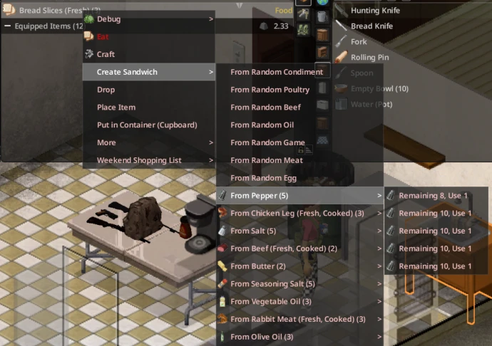 Этот мод изменяет меню эволюционировавших рецептов (таких как супы и сэндвичи), чтобы приправы использовались в порядке возрастания остатка (сначала те, которых осталось меньше всего). Он также группирует одинаковые приправы и ингредиенты, что делает меню более удобным для чтения.