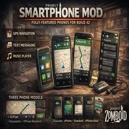 Полнофункциональный смартфон для Project Zomboid Build 42. Телефоны можно найти в домах, офисах и магазинах. Они позволяют перемещаться по карте, обмениваться сообщениями с другими игроками и использовать дополнительные функции.