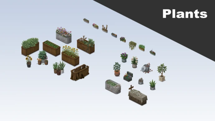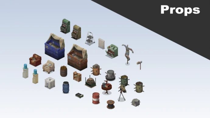 Набор тайлов для Project Zomboid, предназначенный для использования создателями карт. Изображения предпросмотра демонстрируют лишь часть контента; остальные элементы доступны непосредственно в игре.