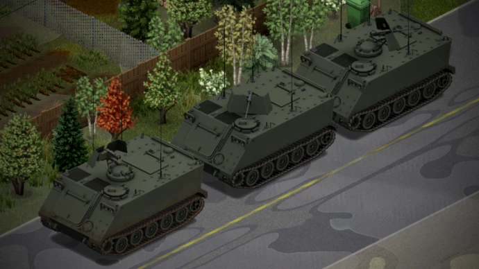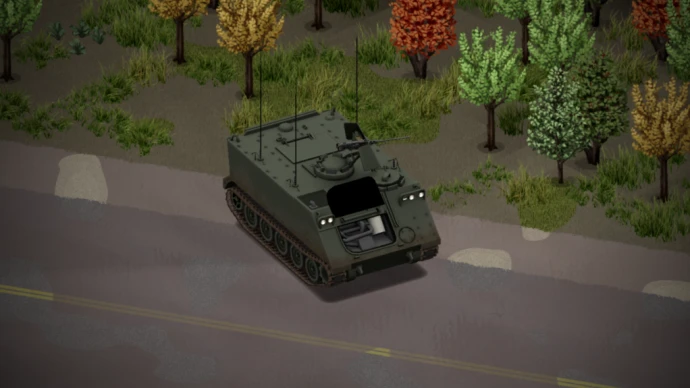 Мод «U.S. M113 APC by Papa_Chad» для Project Zomboid добавляет бронетранспортер M113 с анимированными гусеницами, дверьми и полностью функциональной башней. Требуется установленный мод Military Tool Kit.