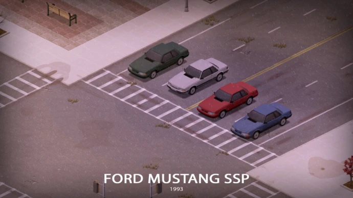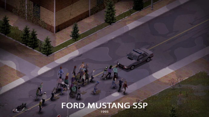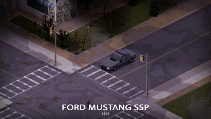 Мод добавляет в Project Zomboid Ford Mustang SSP (Special Service Package) – облегчённую версию по сравнению с серией CVPI. Доступно 5 вариантов исполнения: стандартный полицейский, полиция штата Кентукки, без опознавательных знаков, списанный гражданский вариант и специальная версия «Colonel's Special» с повышенной мощностью. Модели используют два типа кузова с различным оборудованием; некоторые детали взаимозаменяемы между вариантами, другие уникальны для конкретной версии.