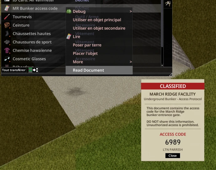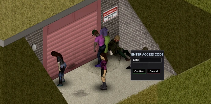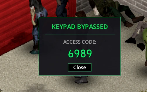 • Взлом: Наличие отвертки позволяет обойти панель взломом (~1 минута). Необходимо оставаться неподвижным с отверткой в инвентаре. При успехе код отображается во всплывающем окне.