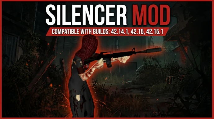 Добавляет профессиональные и самодельные глушители для выбранного ванильного огнестрельного оружия в Project Zomboid. Включает встречающиеся в луте заводские глушители, создаваемые импровизированные модели с несколькими уровнями качества, систему износа, настройку частоты появления через песочницу и поддержку многопользовательской игры в сборке 42.