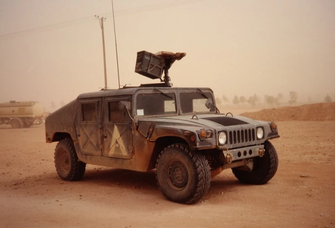 Американский лёгкий многоцелевой колёсный автомобиль периода Холодной войны HMMWV, представленный в 1985 году. Создан для обеспечения армии США универсальным тактическим транспортным средством, пригодным для массового развёртывания в любых театрах военных действий.