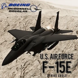 F-15E Strike Eagle – американский всепогодный многоцелевой ударный истребитель, разработанный на базе F-15 Eagle. Отличается от других версий F-15 более тёмной камуфляжной окраской, интегрированными подкрыльевыми топливными баками (CFT) и двухместной кабиной в ряд.
