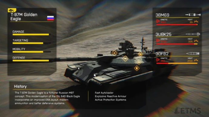 Т-97M «Золотой орёл» – вымышленный российский современный основной боевой танк, разработанный на базе объекта 640 «Чёрный орёл». Модернизация включает улучшенные прицельные системы, новые типы снарядов, комплексы активной защиты (мягкого и жёсткого поражения), усовершенствованную схему размещения динамической защиты и систему управления огнём.