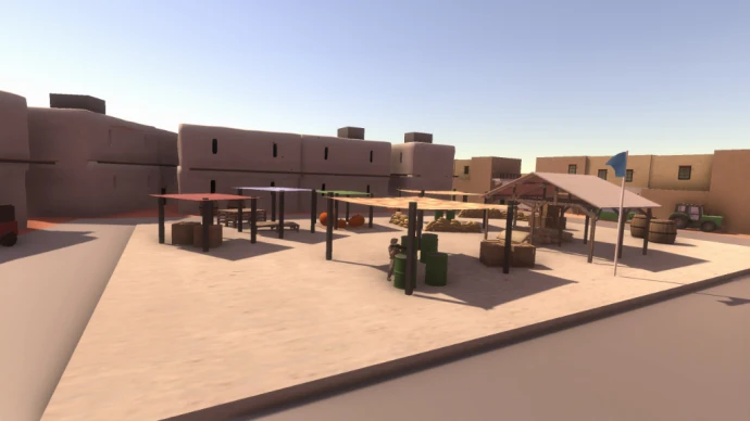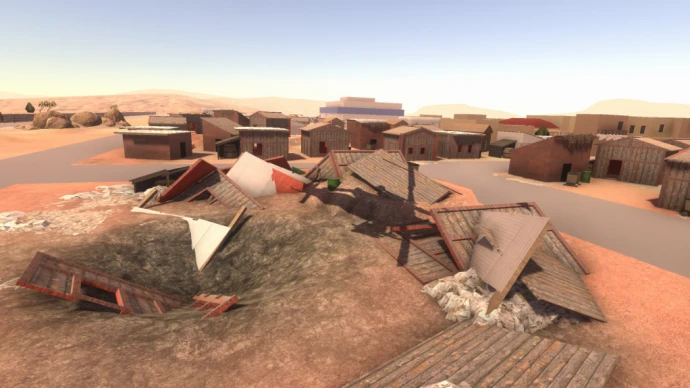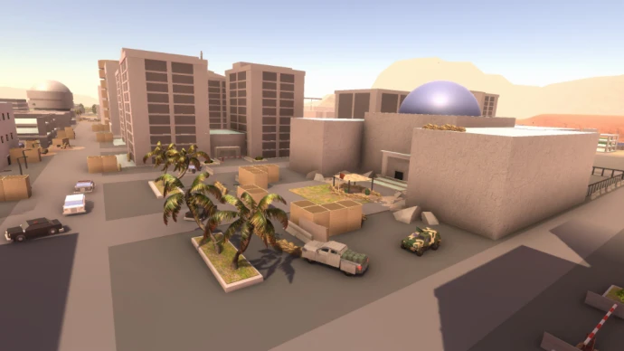 Карта включает 15 точек захвата флагов, обеспечивая интенсивные и динамичные сражения в различных локациях. Среди детализированных зон представлены трущобы, полицейский участок, авиабаза, рынок, торговый центр, канал, рыбацкая пристань, бункер, место крушения, правительственное здание, университет, пригороды и центр города.