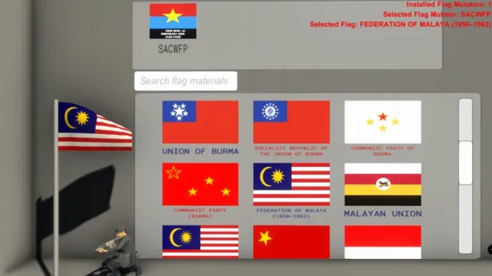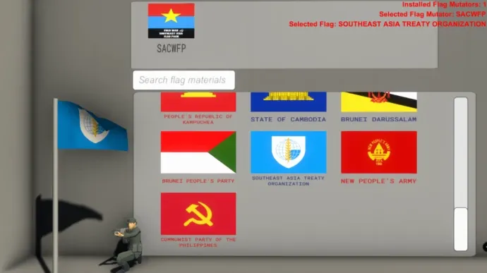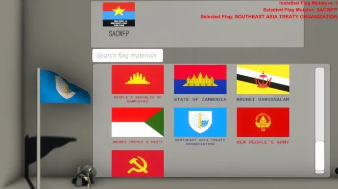 Этот мод добавляет коллекцию исторических флагов стран и групп Юго-Восточной Азии времен холодной войны в игру Ravenfield. Включает флаги таких образований, как Демократическая Республика Вьетнам, Коммунистическая партия Таиланда, Королевство Лаос, Фронт FRETILIN и многие другие. Для работы требуется мод Mian's Custom Flags Framework. Авторы подчеркивают, что мод создан исключительно для исторических сценариев и не поддерживает какие-либо экстремистские идеологии.