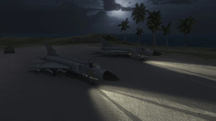 Прицел для бомбометания отсутствует, но доступен индикатор CCIP в виде от третьего лица.