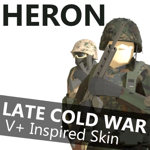 Мод «Heron – Vanilla+ Inspired Skin» для Ravenfield предлагает игрокам окунуться в атмосферу холодной войны, вдохновляясь эстетикой армии США 80-90-х годов и западногерманского Бундесвера. Здесь также чувствуются отсылки к войне в Персидском заливе и Вьетнаму. Этот скин добавляет уникальный стиль для солдат, который отлично вписывается в противостояние с нацией Казарки.