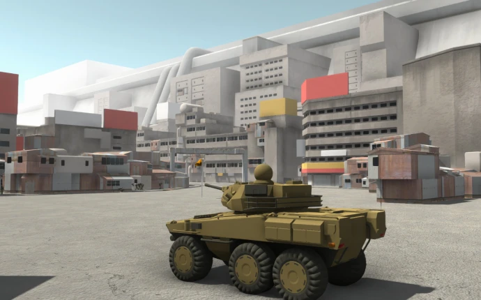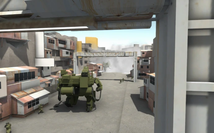 Статус разработки: Карта находится в стадии полуготовности (Semi-WIP). Поскольку она была напрямую портирована из отдельной игры, многие участки локации лишены детализации или слишком открыты. Кроме того, UV-развёртки и текстуры основных элементов окружения являются временными заглушками, отсутствует графика для вывесок. Требуется дополнительная балансировка и доработка специально для Ravenfield.