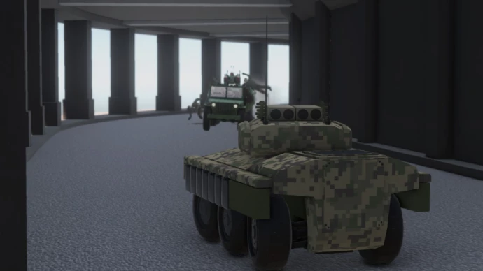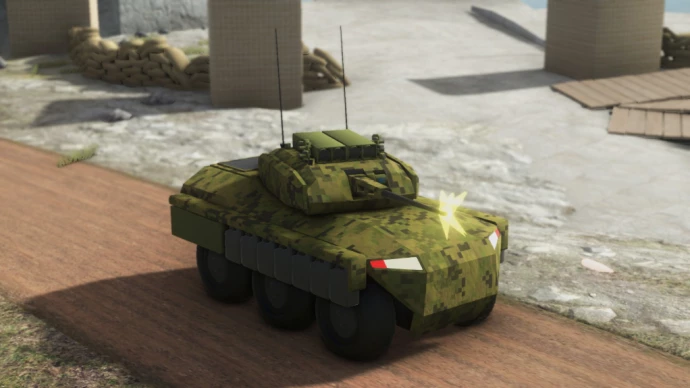 Rascal UGV — это средний амфибийный беспилотник на шести колесах, вооруженный 25-мм автоматической пушкой для борьбы с пехотой и четырьмя ПТУРами против тяжелой техники. Не лучший выбор для интенсивных боев, ведь это типичная «стеклянная пушка»: мощный урон, но минимум здоровья. Борта защищены лишь канистрами с бензином и ящиками, которые легко уничтожаются даже огнем из стрелкового оружия. Один удачный выстрел из РПГ — и вы в небе. С Rascal важно грамотно выбирать позиции и не лезть в гущу боя.
