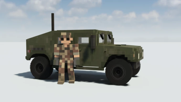 Американский внедорожник HMMWV с разными вариантами кузова и вооружения. В моде доступны четыре версии: открытая, закрытая, с турелью и с установленным пулемётом M2.