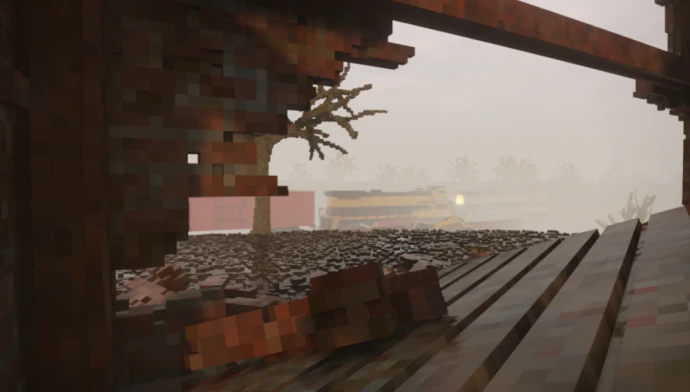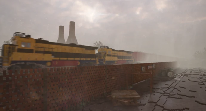 Небольшая, но детализированная карта с работающим поездом, который случайным образом перемещается по локации.