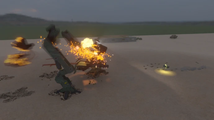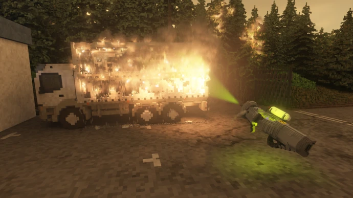 - Удержание правой кнопки мыши: выпуск короткодистанционного теплового луча с широким углом действия. Луч быстро испаряет листву, плавит пластик, поджигает воспламеняемые объекты и детонирует взрывчатку.