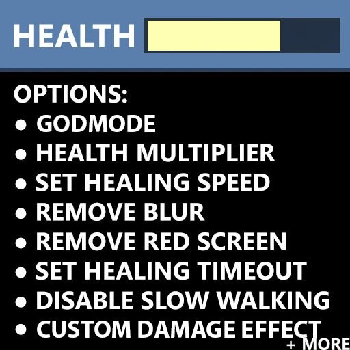 Мод позволяет изменять сложность игры и настраивать визуальные эффекты, связанные со здоровьем. Скорость ходьбы всегда остается нормальной независимо от уровня здоровья, остальные параметры можно изменить в меню настроек мода.
