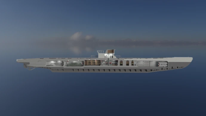 Лодка полностью функциональна: способна погружаться, запускать торпеды, использовать зенитную установку и 88-мм пушку как оружие TABS, перемещаться по трапам и открывать двери и люки по всему корпусу.